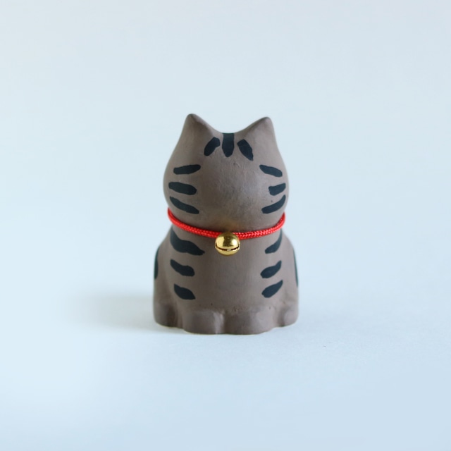 ぽってりとしたシルエットが愛らしい、キジトラ柄の猫の置物です。 ちょっと濃いめのキジトラをイメージ。 ちょこんと座る姿は、 まるで静かにこちらを見つめているよう。 それでいて、あえて表情はつけていません。 見る人によって、 眠そうにも、甘えているようにも、 少しすましているようにも見える―― そんな“余白”を残した猫です。 型を取り、削り、磨き、塗る。 いくつもの工程を重ねながら、 ひとつひとつ丁寧に仕立てました。 そのままシンプルに飾っても、 お好きにお顔を描いて“うちの子”にしていただくのもおすすめです。 (描く場合はアクリル絵の具をご使用ください) デスクの片隅や、本棚のすき間に。 そっと寄り添う、小さな猫です。 サビ柄ちゃんは特に模様がひとつひとつ異なるランダムな着彩なので 写真と異なる場合があります。 フェルトの座布団、首輪と鈴付き。 他の柄の猫もいます。 サイズ:高さ 約6cm/よこ 約3.8cm/奥行き 約4cm 重さ:約63g 素材:石膏(本体) ※ひとつひとつ手作業のため、形や質感、細かなシワや傷の出方が異なります。 ※石膏製のため、落下や強い衝撃で破損する場合がございます。お取り扱いにはご注意ください。 ※底面は白です。