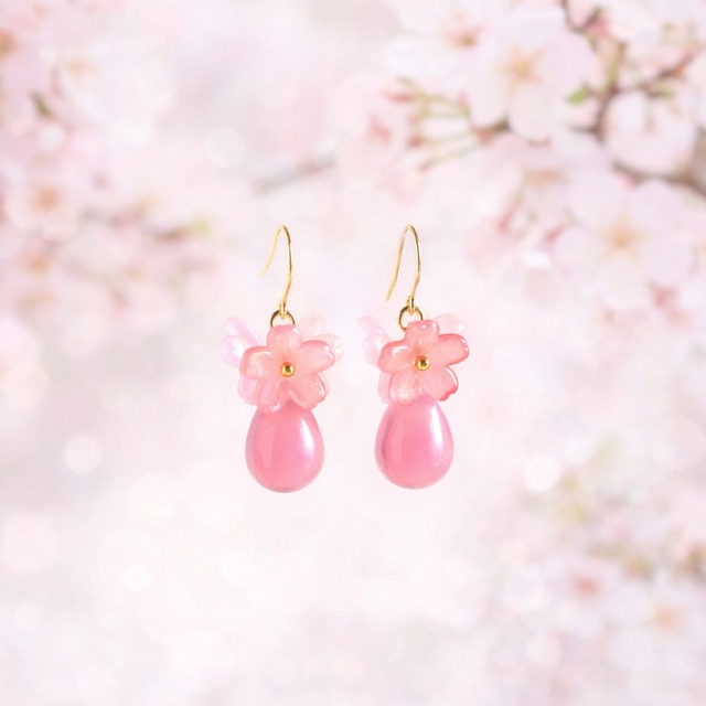 桜とドロップのピアス/p1638