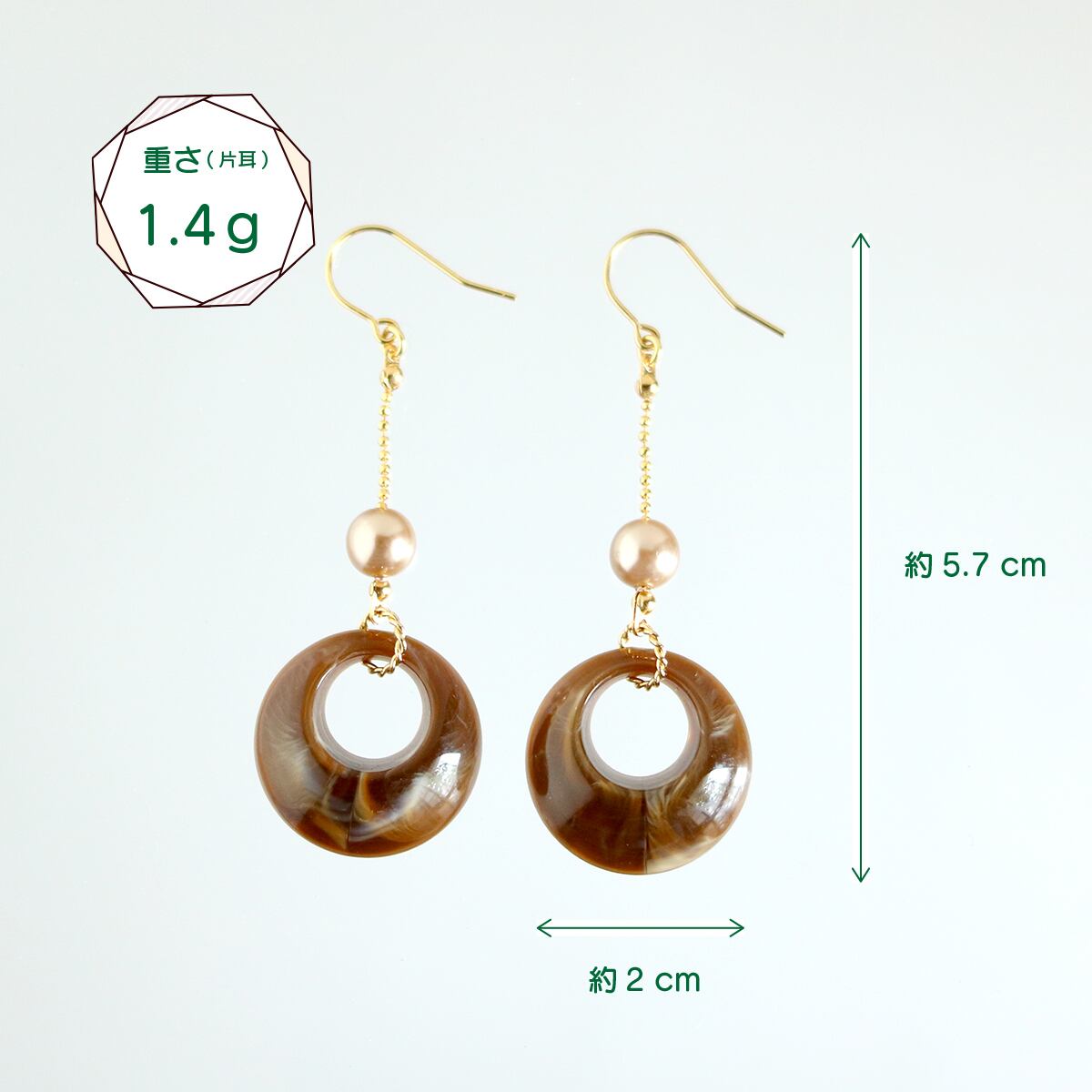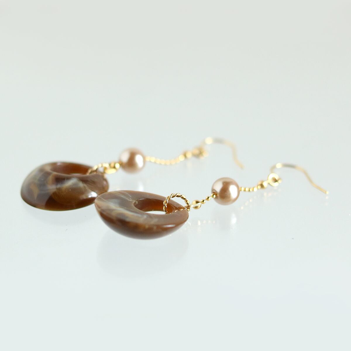 月の輪マーブルとパールのピアス(ブラウン)/p1627