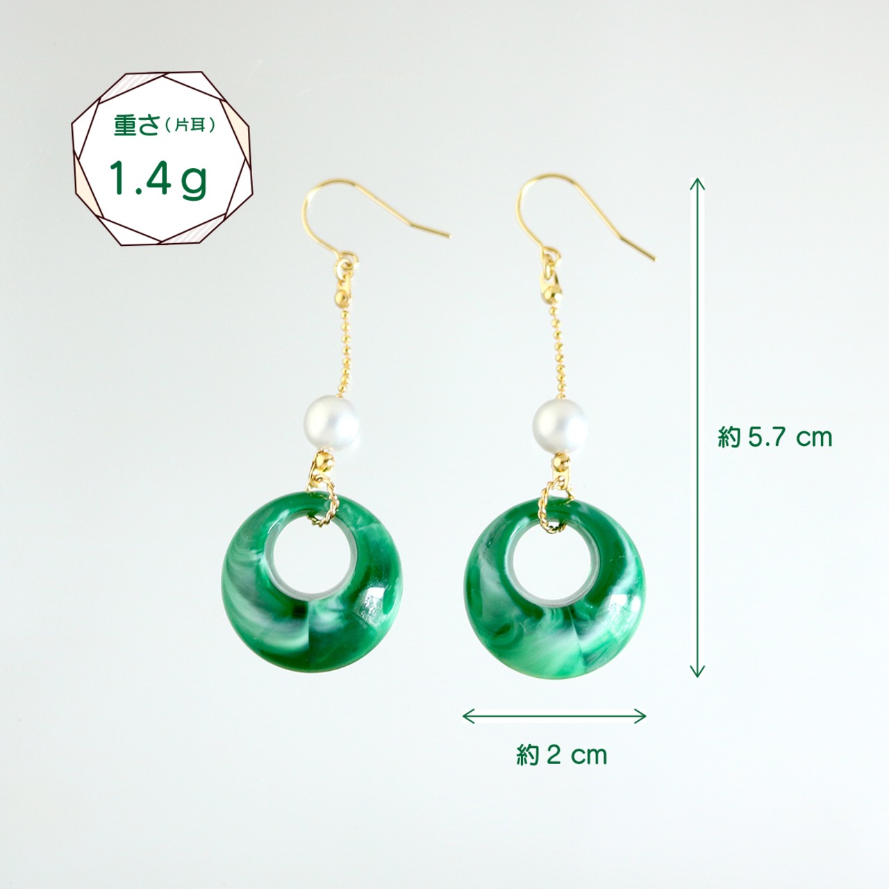 月の輪マーブルとパールのピアス(グリーン)/p1630