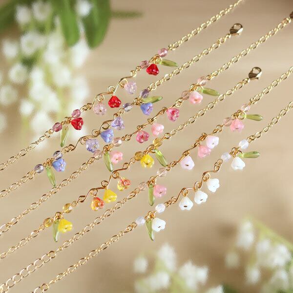 チェコガラスビーズのベルフラワーとダガーを、すずらんに見立てたブレスレットです。