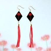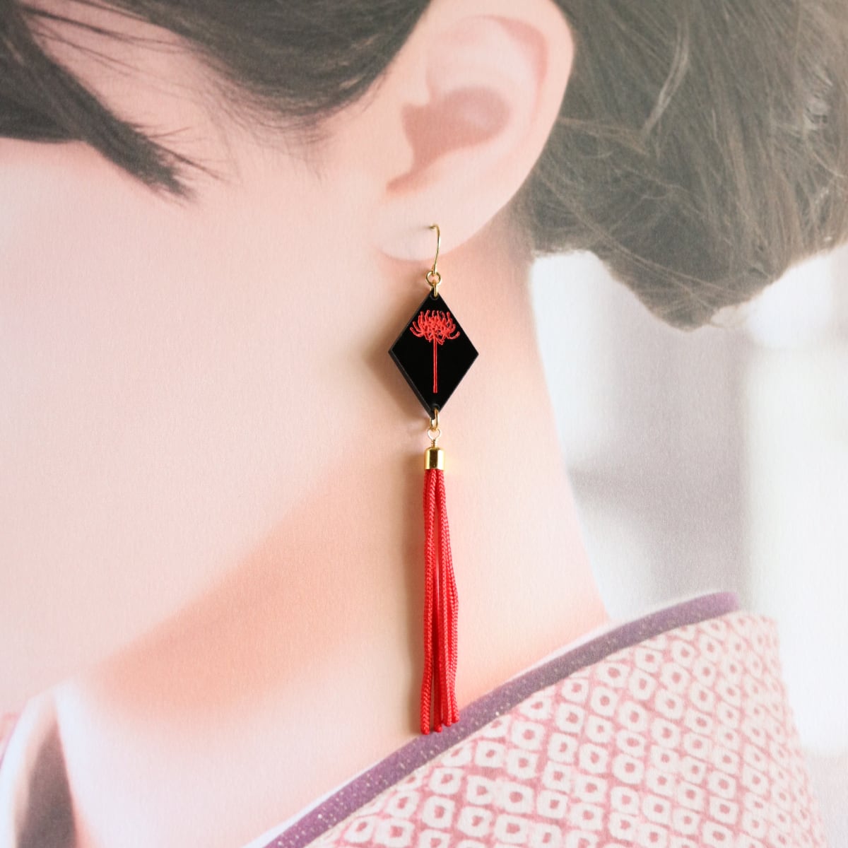 タッセル揺れる彼岸花(ヒガンバナ)のピアス/p1632