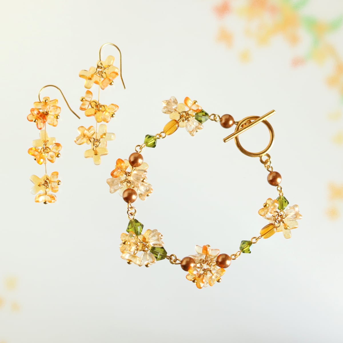 秋の風にのって甘く香る、キンモクセイをイメージしたブレスレットです。