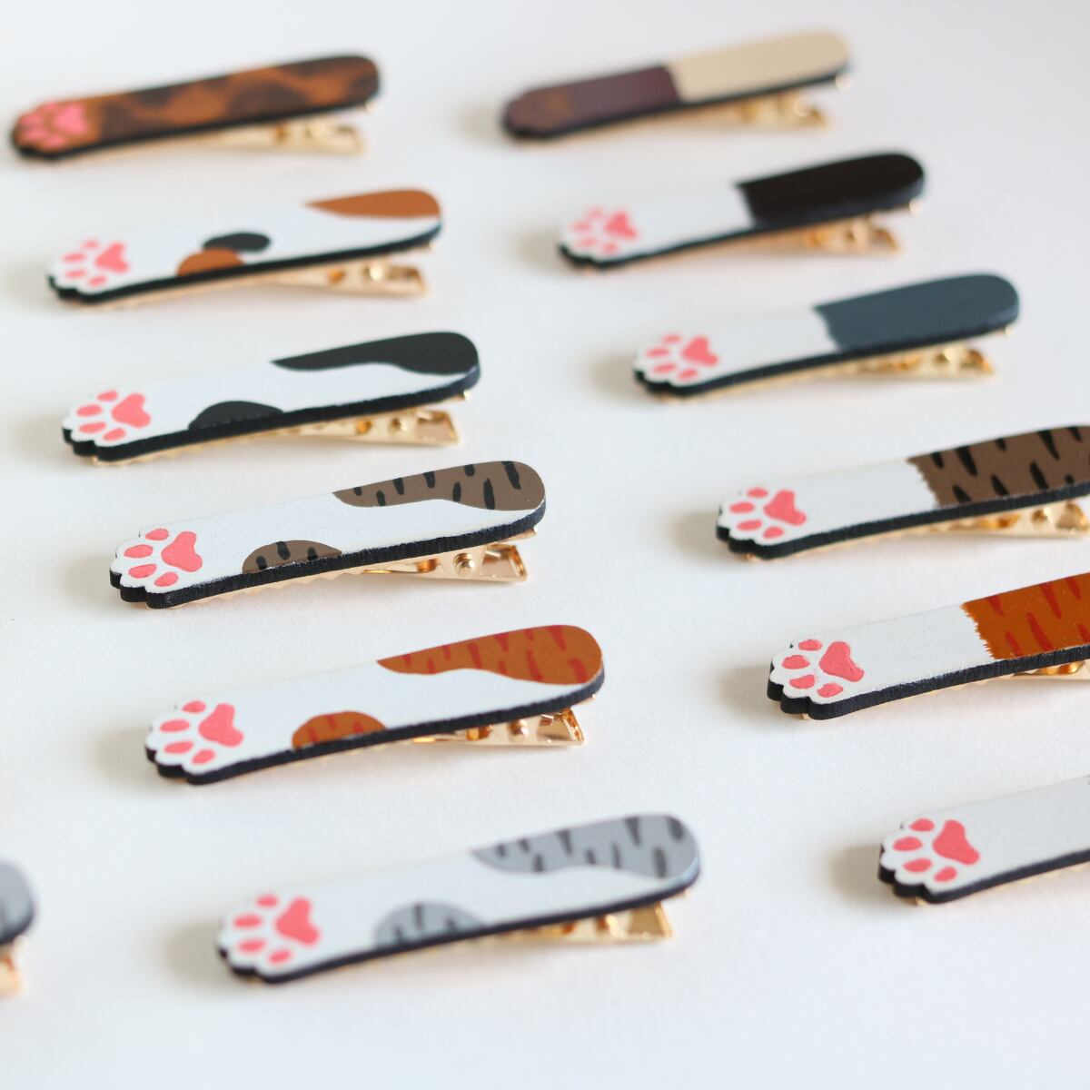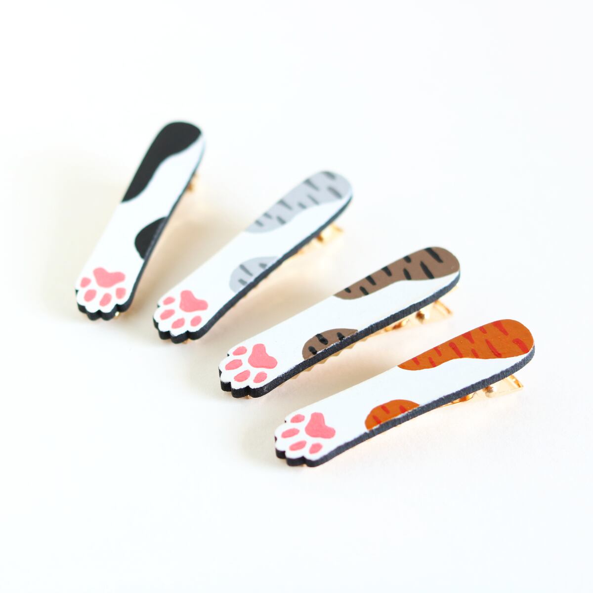 かわいい肉球がアクセントになった、猫の手モチーフのヘアクリップです。