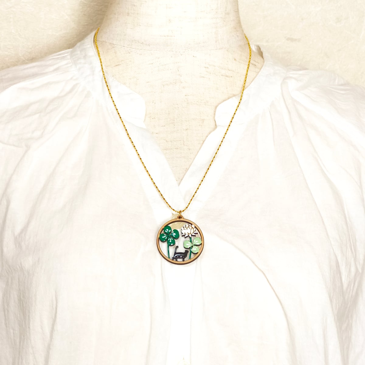 *ラウンドフレームのネックレスのシリーズはトップのモチーフ以外は共通の仕様となっておりますので、2枚目以降の写真はサイズ感やチェーンのご確認用としてクローバーのモチーフでご案内しております。