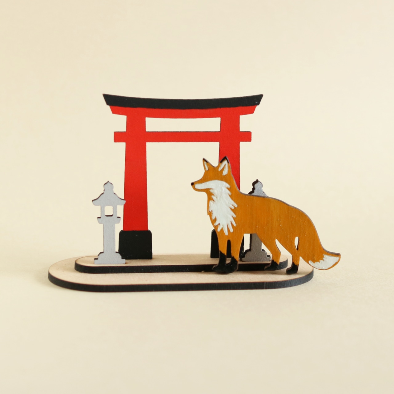 石灯籠の部分にブローチピンを引っ掛けて固定できるデザインです。