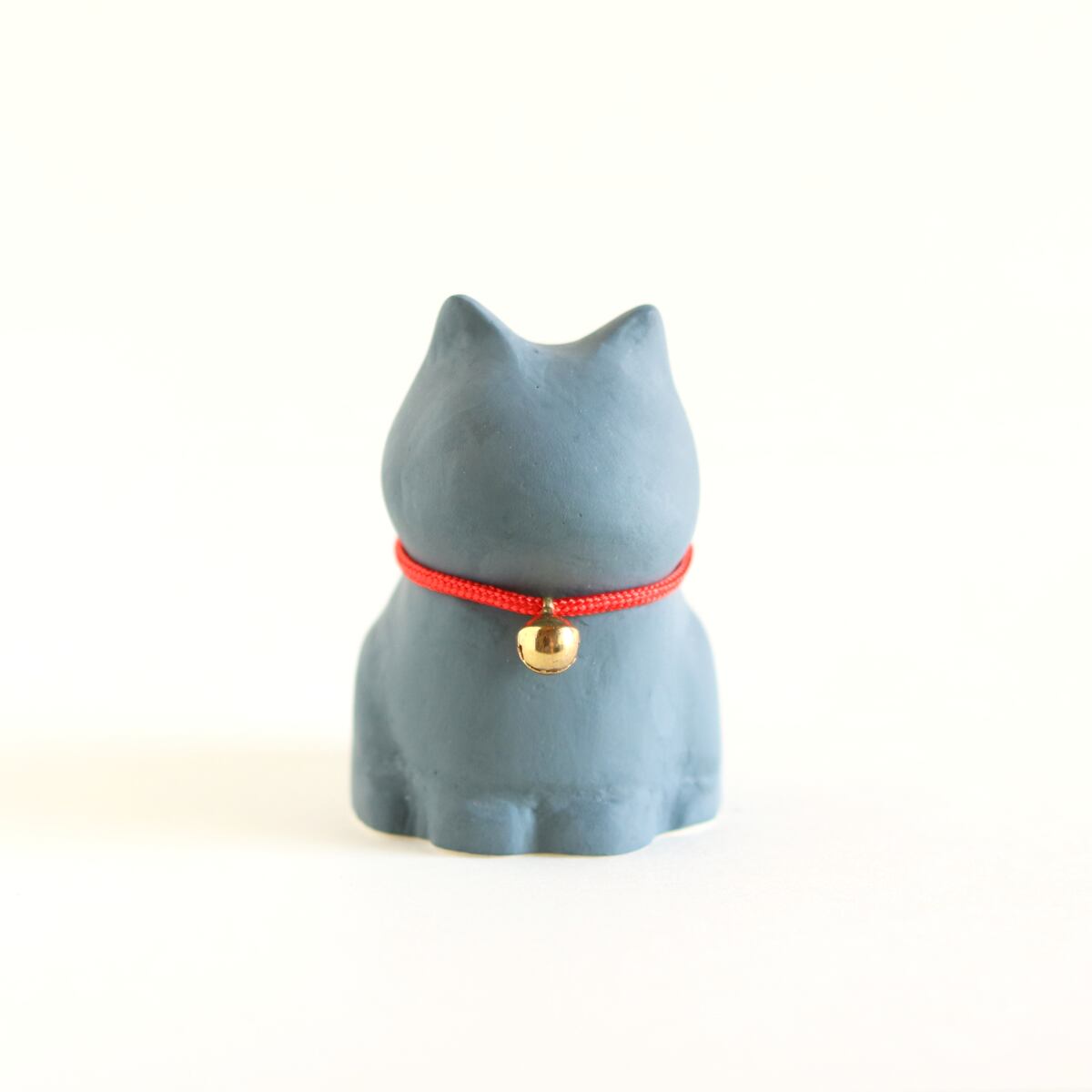 ぽってりとしたシルエットが愛らしい、ロシアンブルーのような灰色猫の置物です。