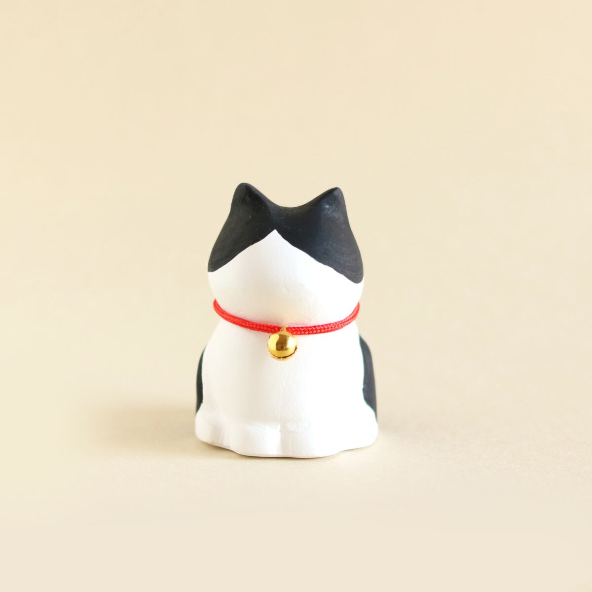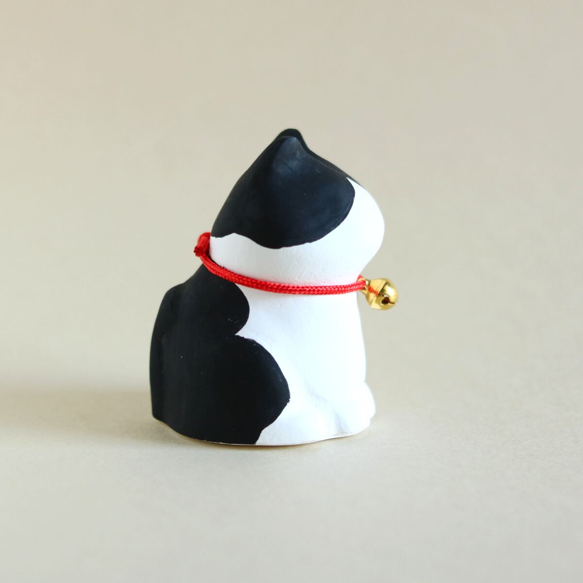 ぽってりとしたシルエットが愛らしい、ハチワレ柄・白黒柄の置物です。