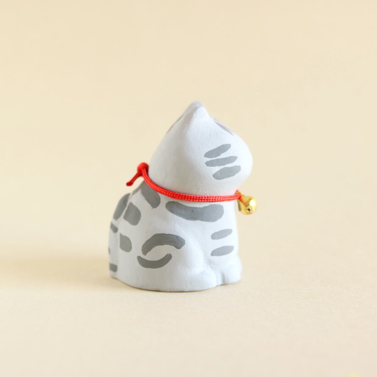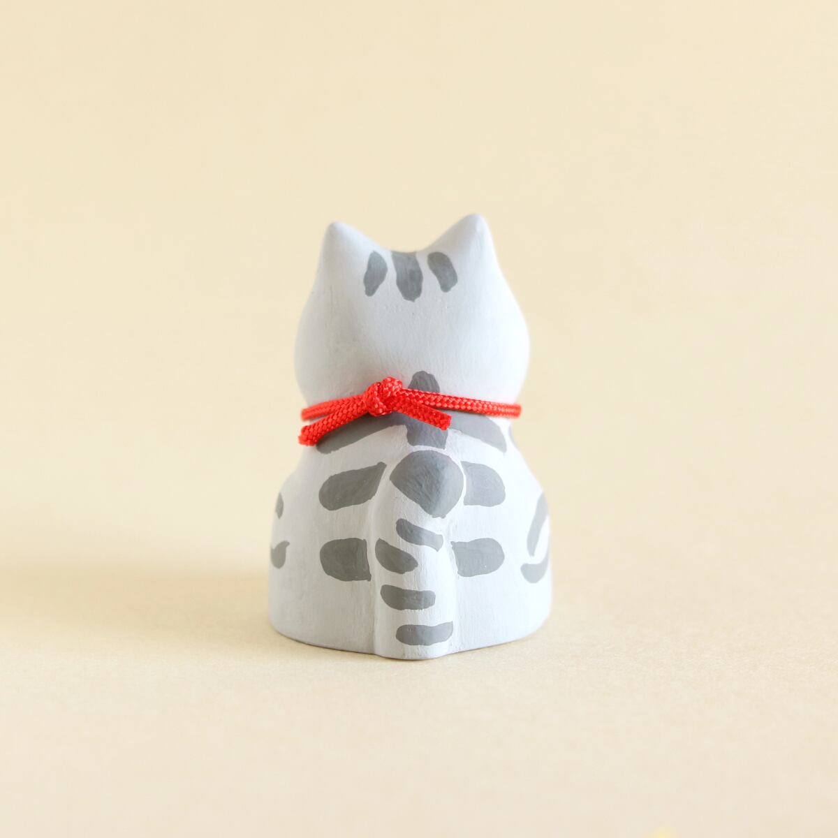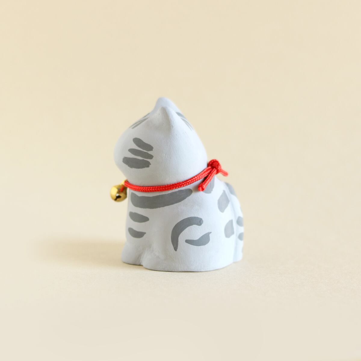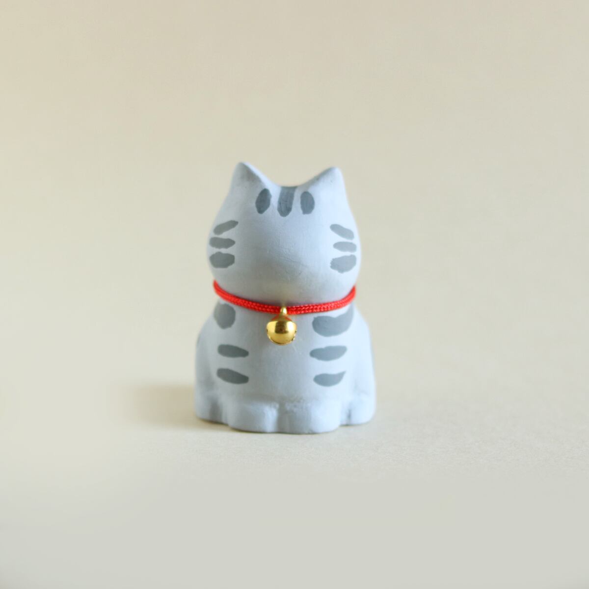 ぽってりとしたシルエットが愛らしい、サバトラ柄の猫の置物です。