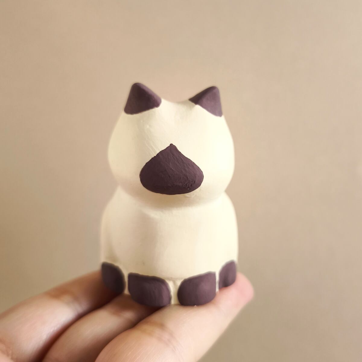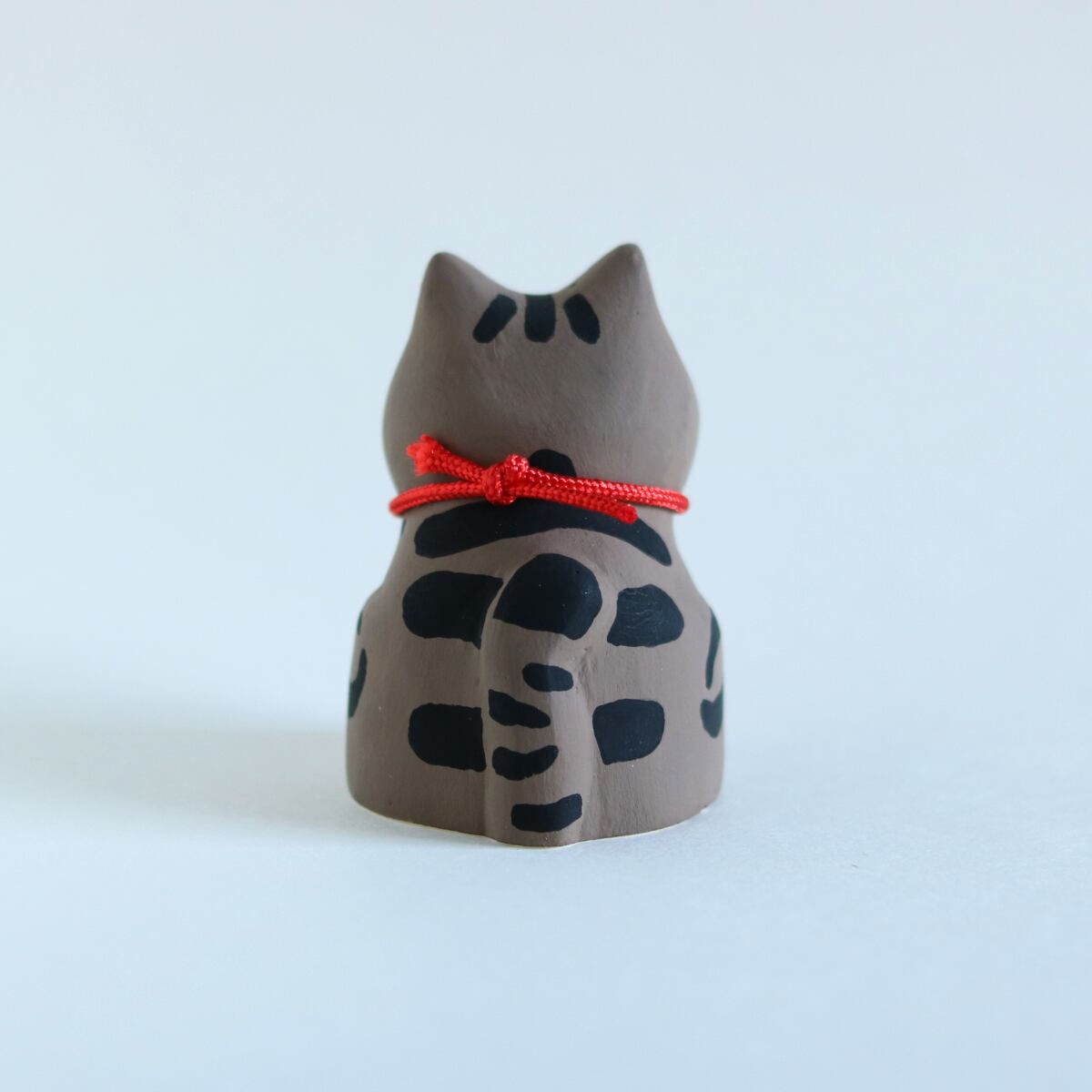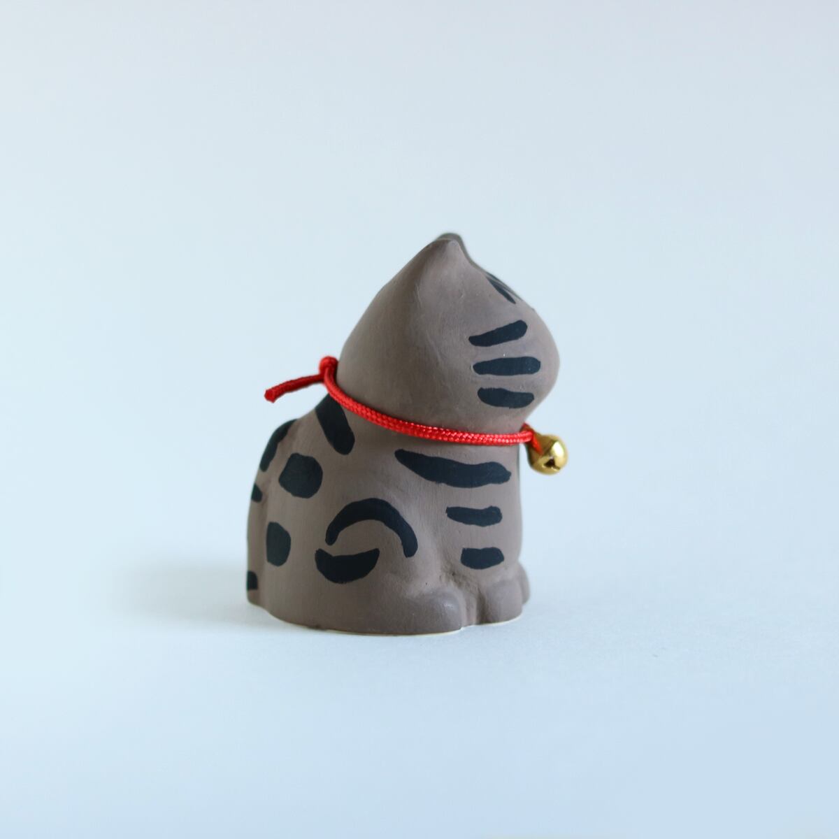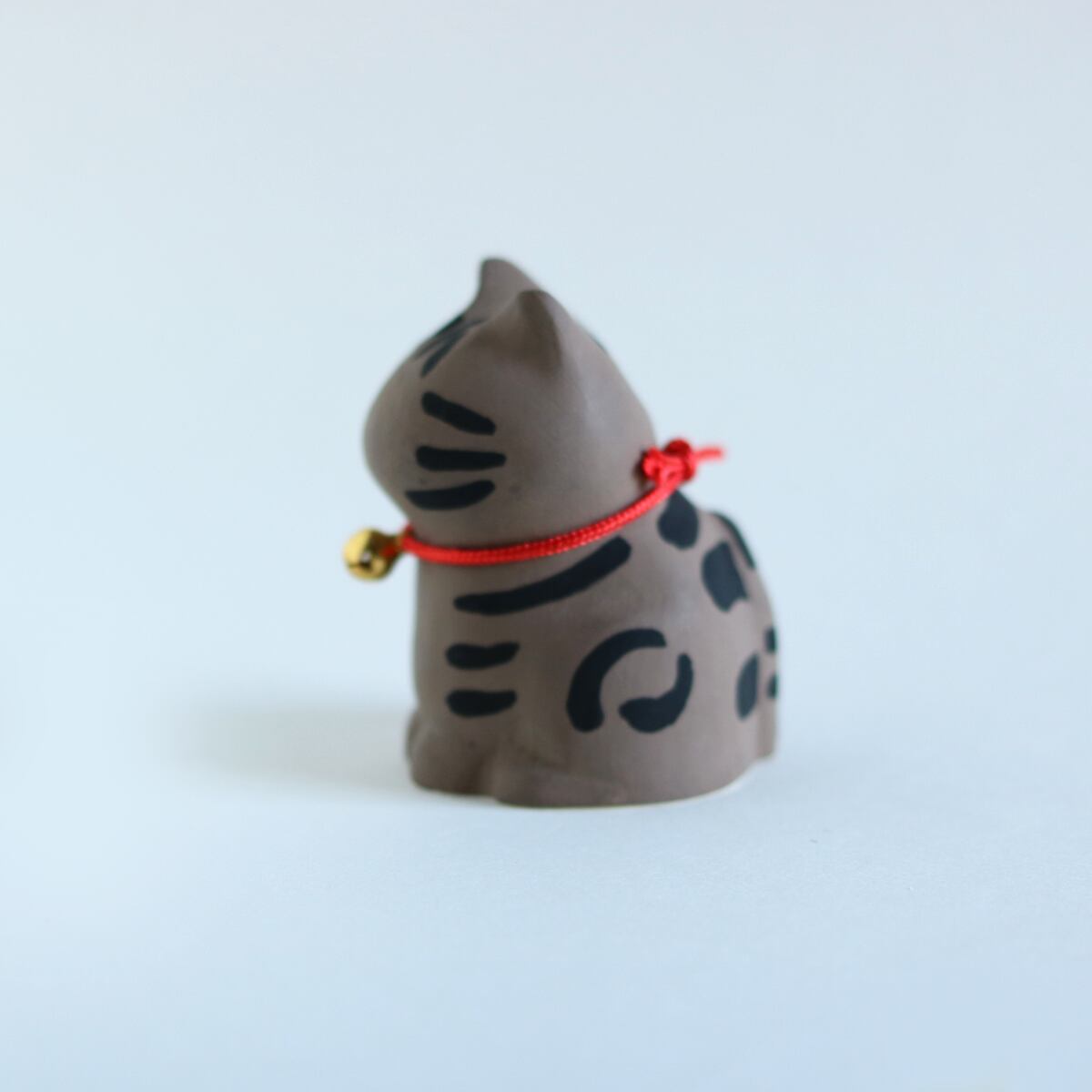 ぽってりとしたシルエットが愛らしい、キジトラ柄の猫の置物です。