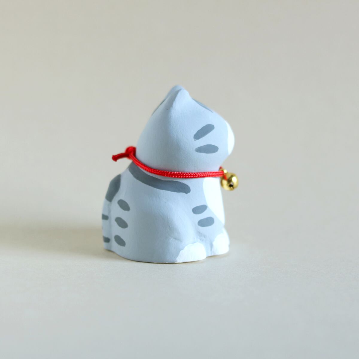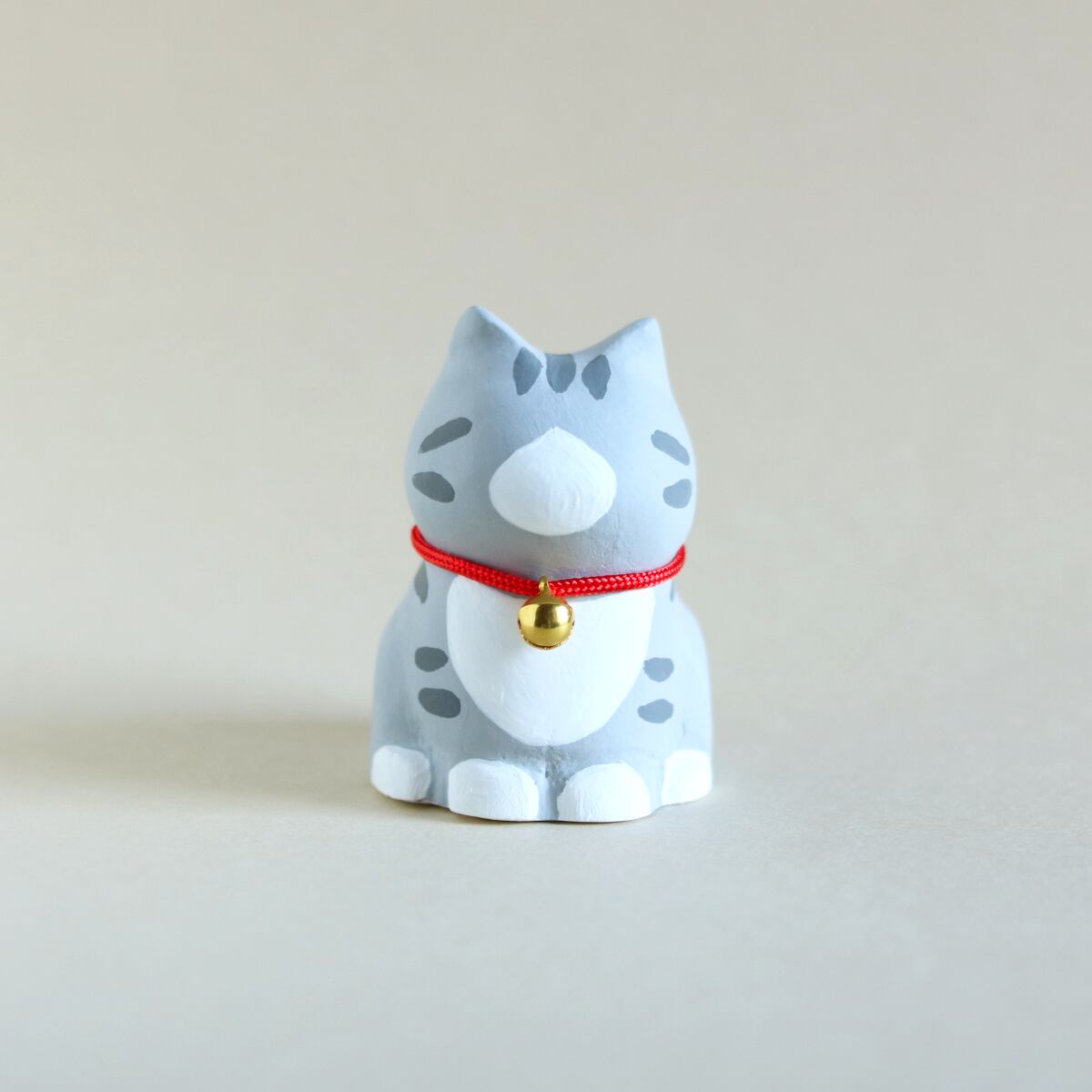 ぽってりとしたシルエットが愛らしい、サバトラ白柄の猫の置物です。