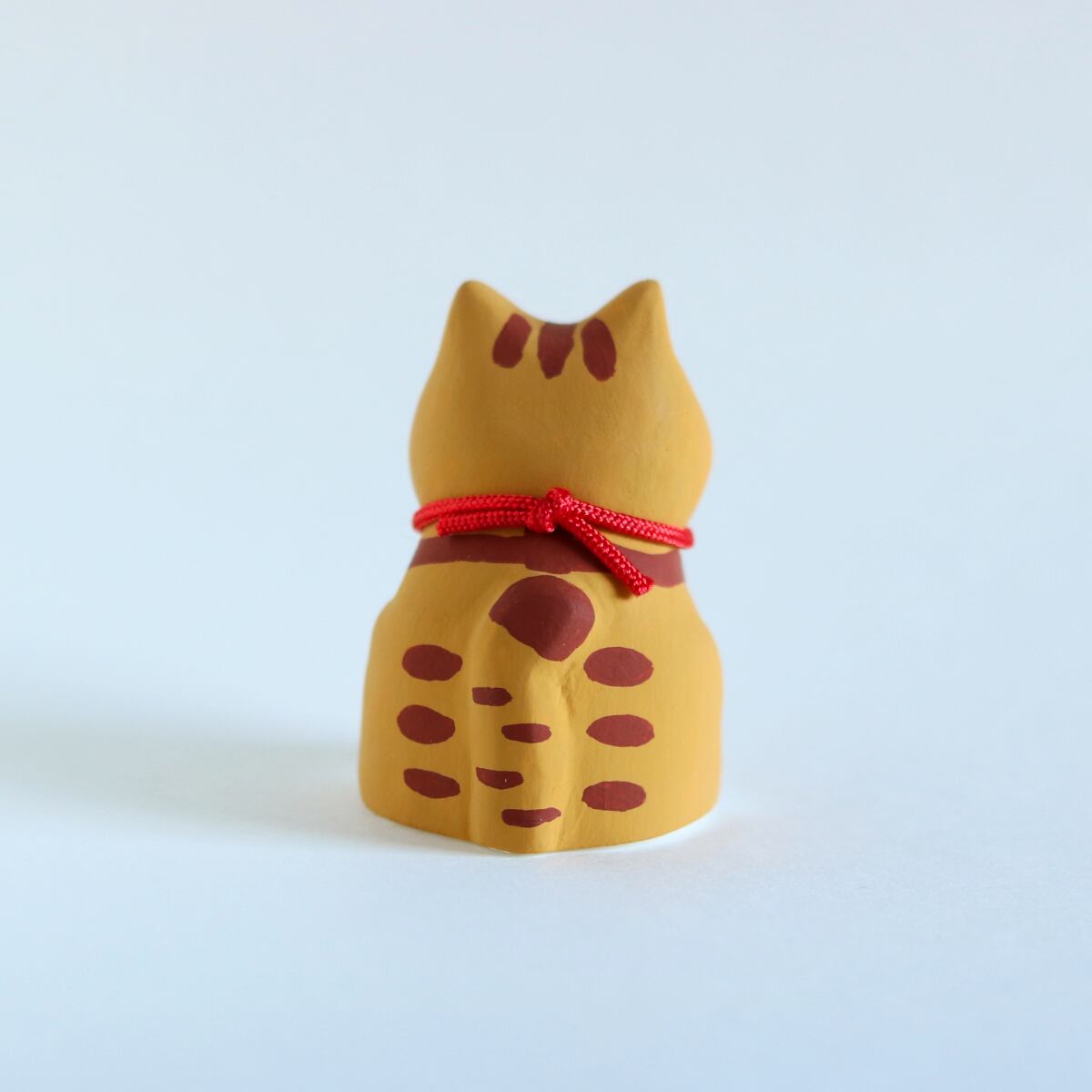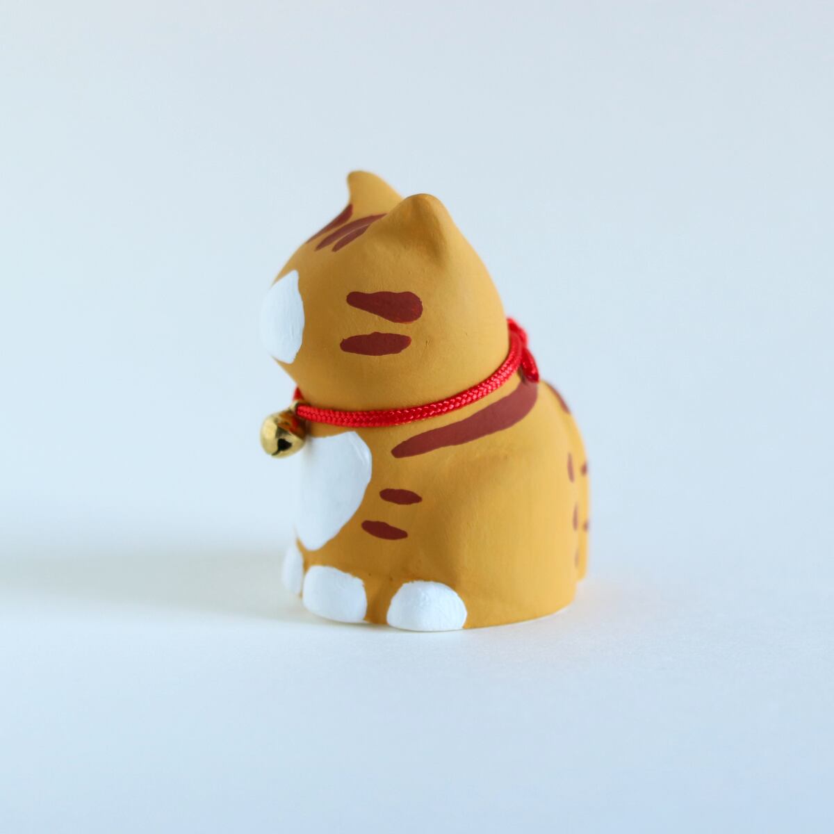 ぽってりとしたシルエットが愛らしい、茶トラ白柄の猫の置物です。