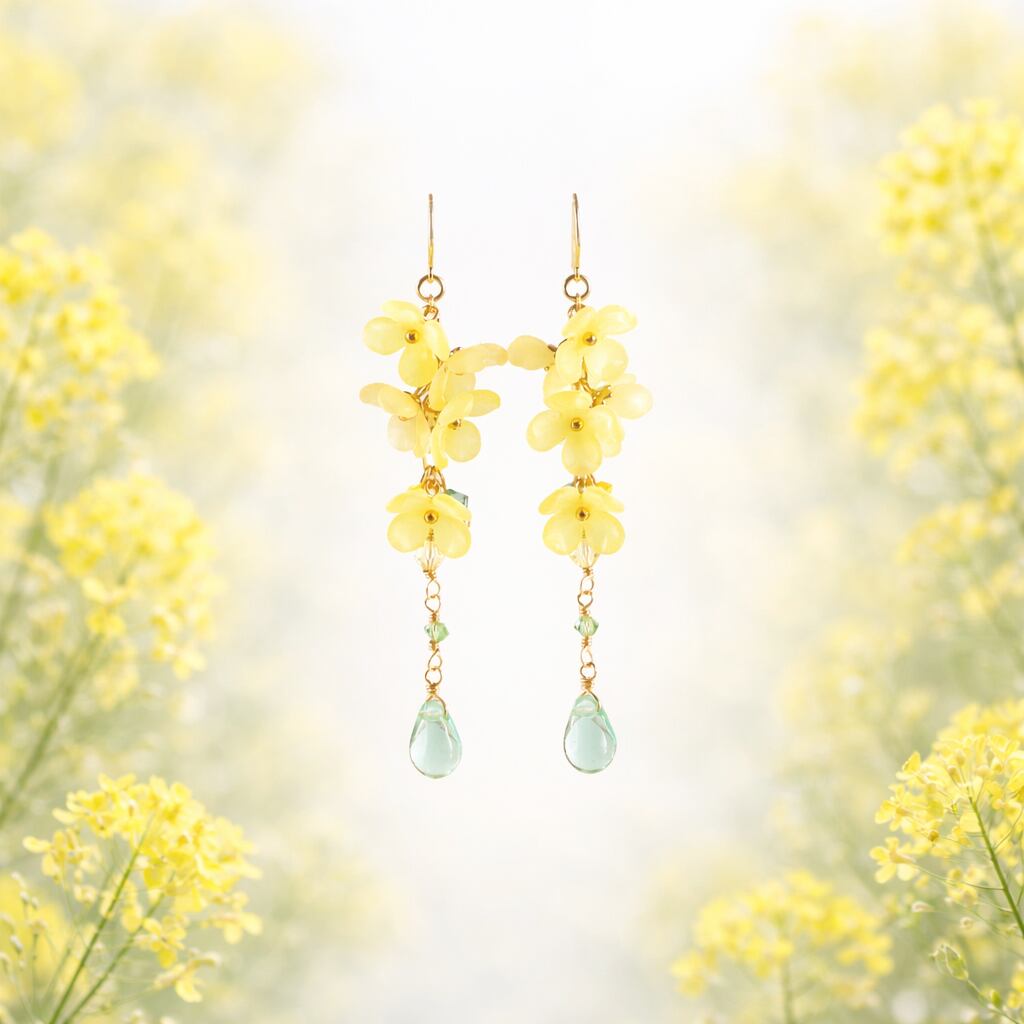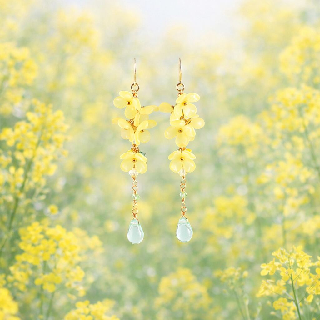 春の風にそよそよと揺れる、菜の花をイメージしたピアスです。
