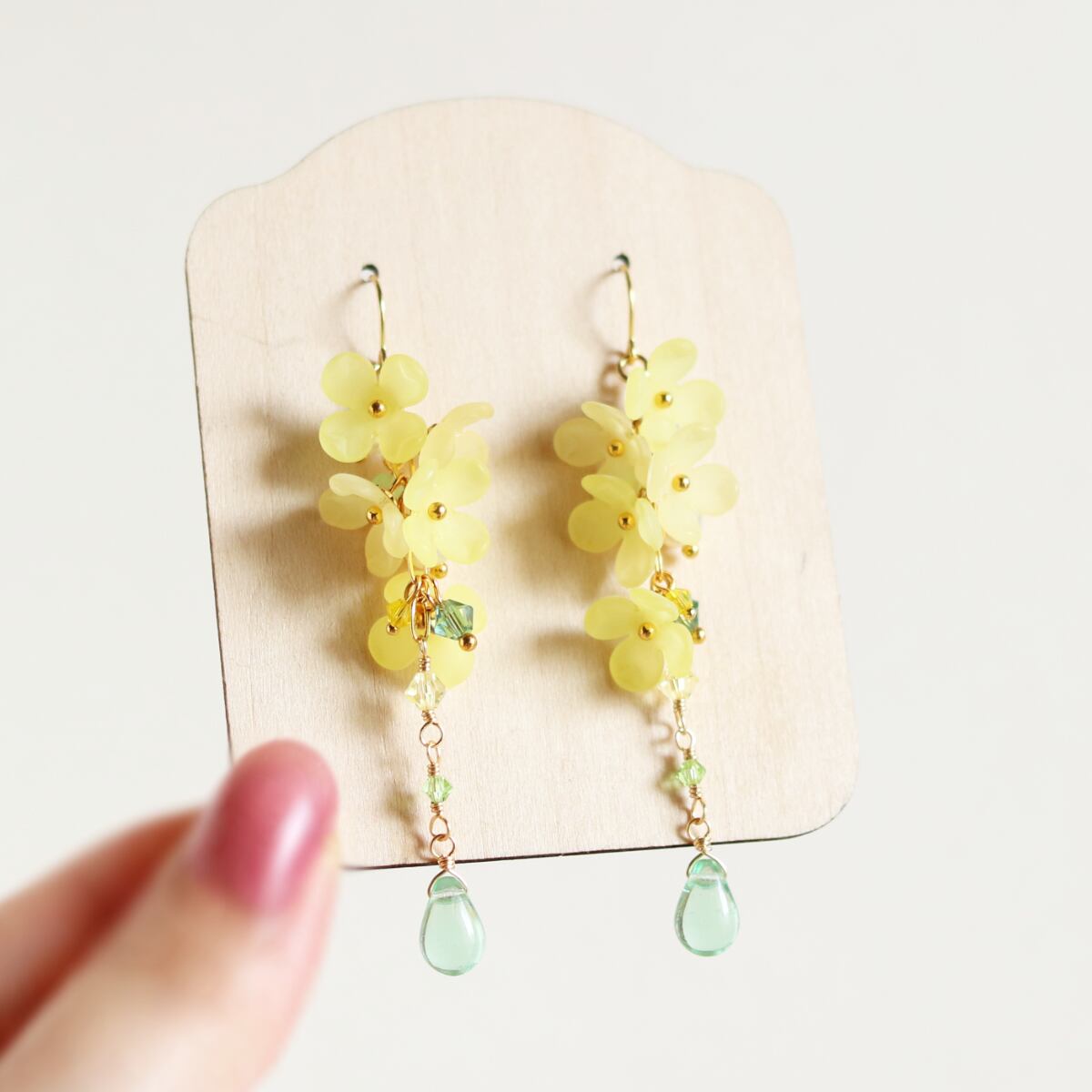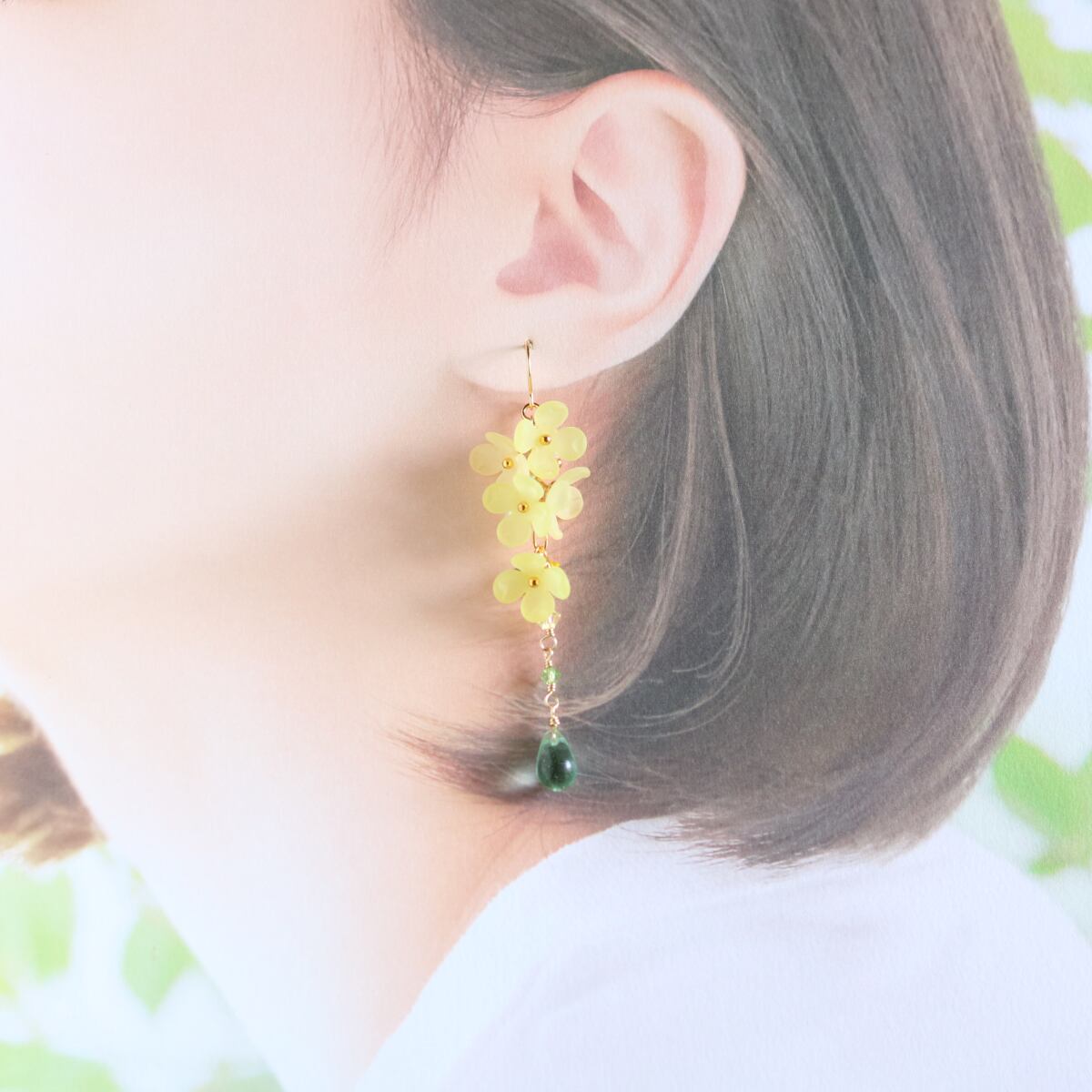 ほんのり濃淡をつけた優しい春色の、ふたつのイエローカラーが耳元に春らしい彩りを添えてくれます。