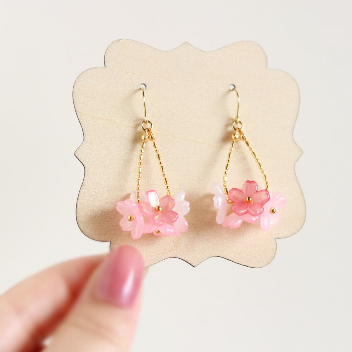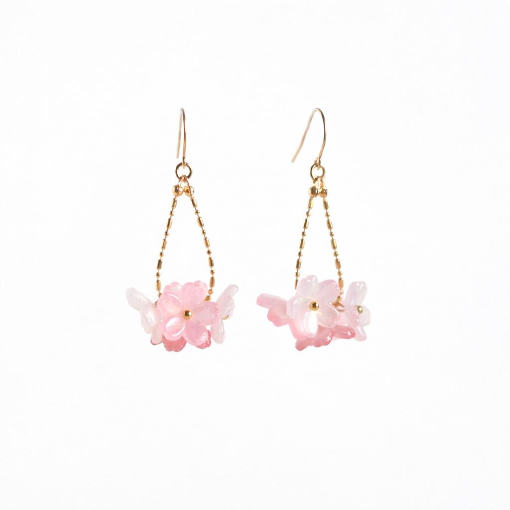 耳元で桜色がゆらゆらと揺れるたび、気持ちまでふわっと軽くなるようなアクセサリー。