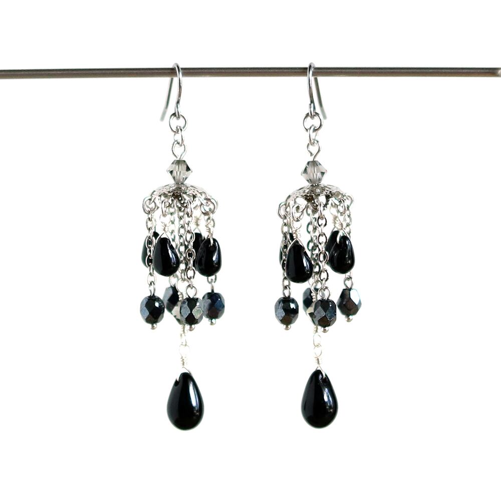 華やかに揺れるシャンデリアデザインピアス・ジェット/p1342