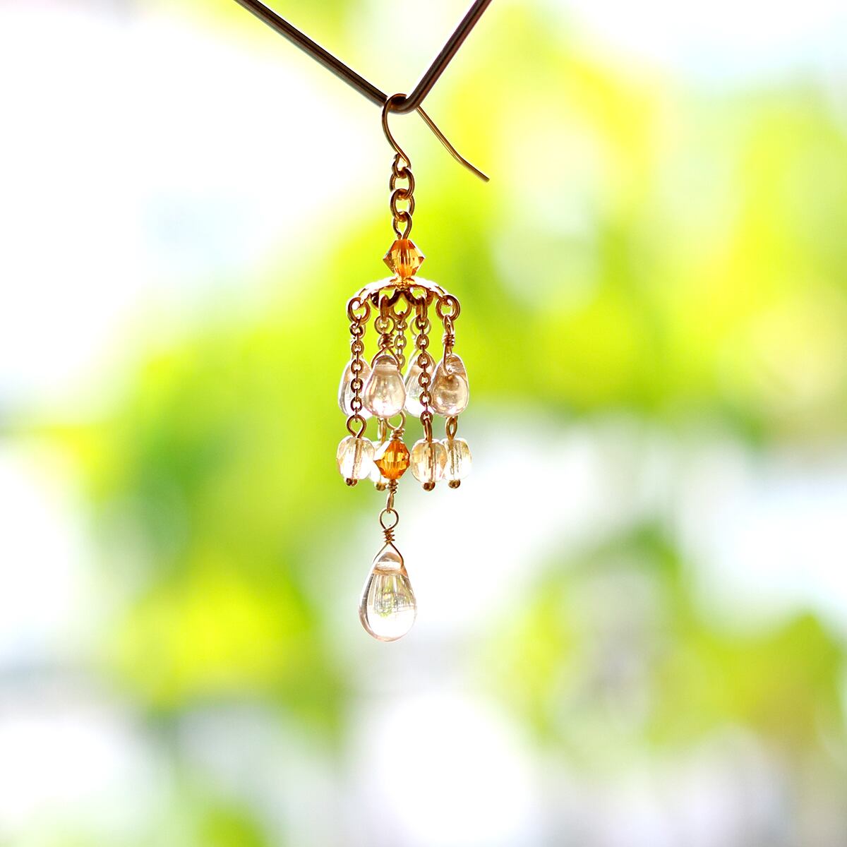 華やかに揺れ動くシャンデリアのようなデザインのピアスを作りました。