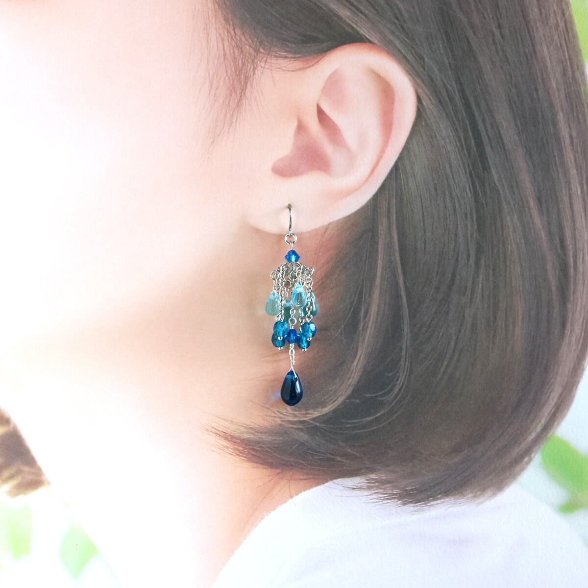 華やかに揺れるシャンデリアデザインピアス・ブルー/p1464