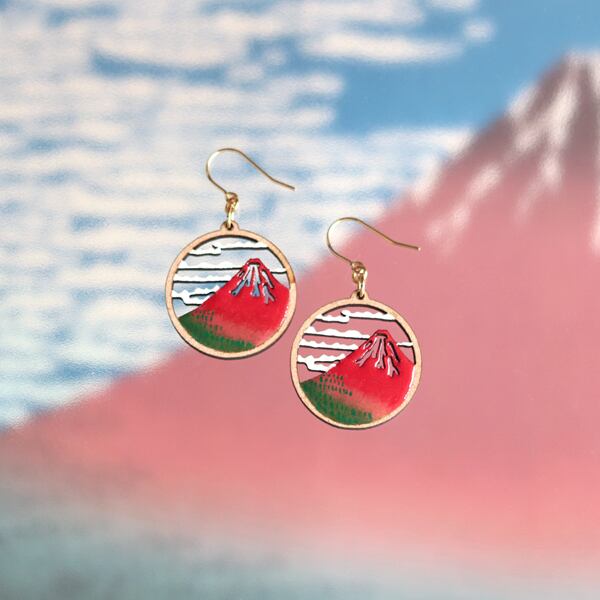 凱風快晴ラウンドフレームピアス ・冨嶽三十六景 葛飾北斎/p1202