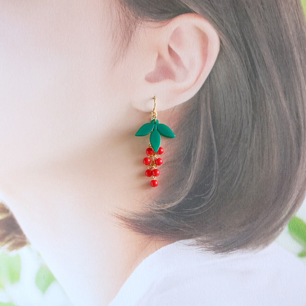 それととても良く似ていて、同じく縁起の良い「千両」「万両」も合わせて3点のセットピアスを仕立てました。