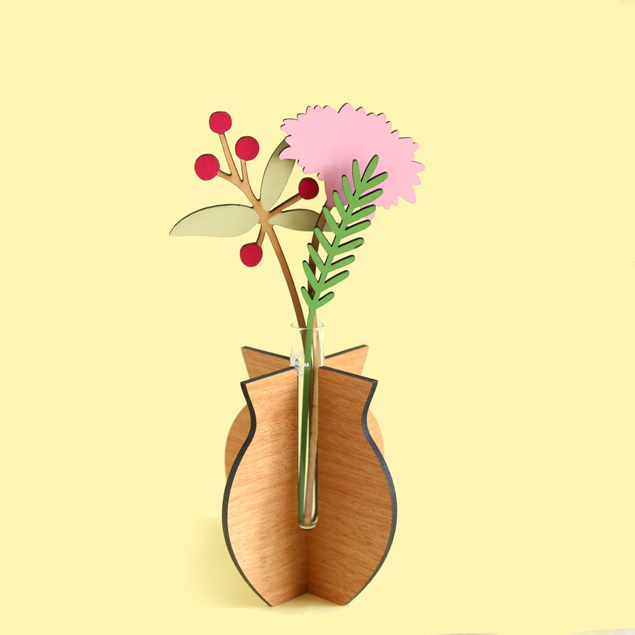 中央には小さな試験管をセットして、草花を飾ることができます。