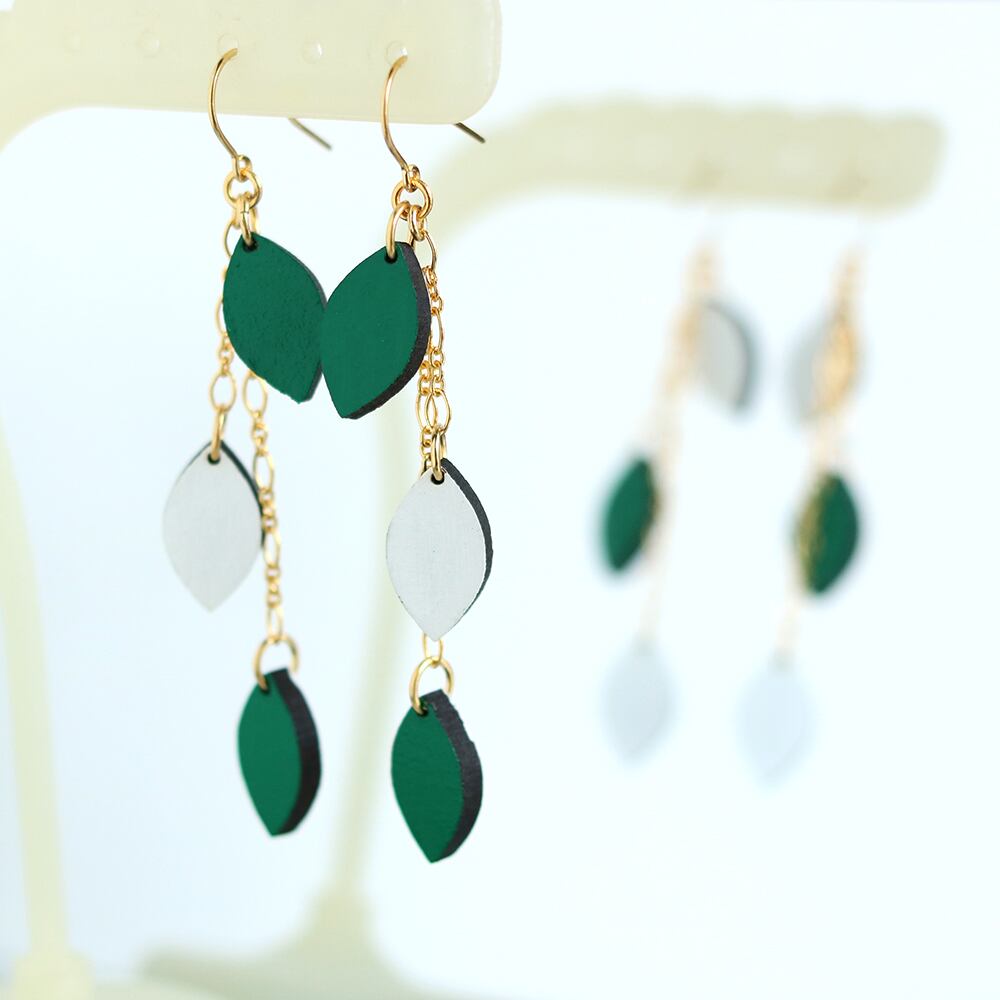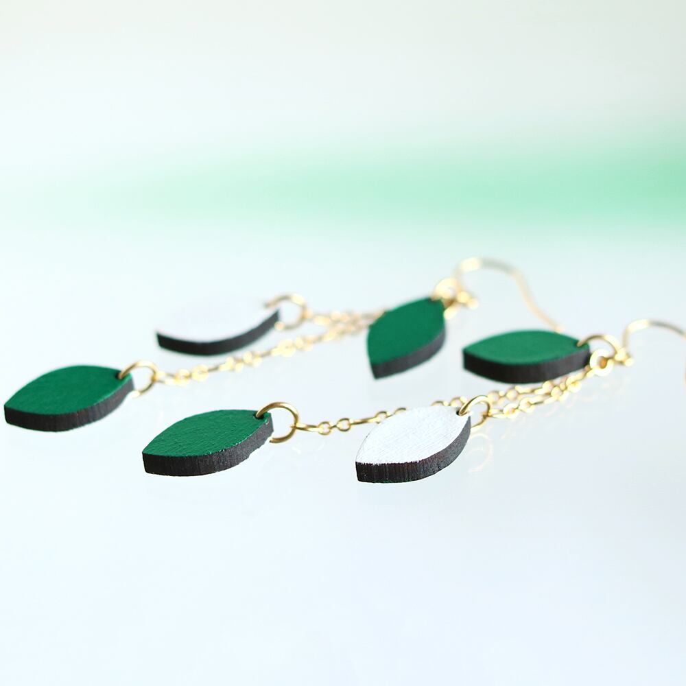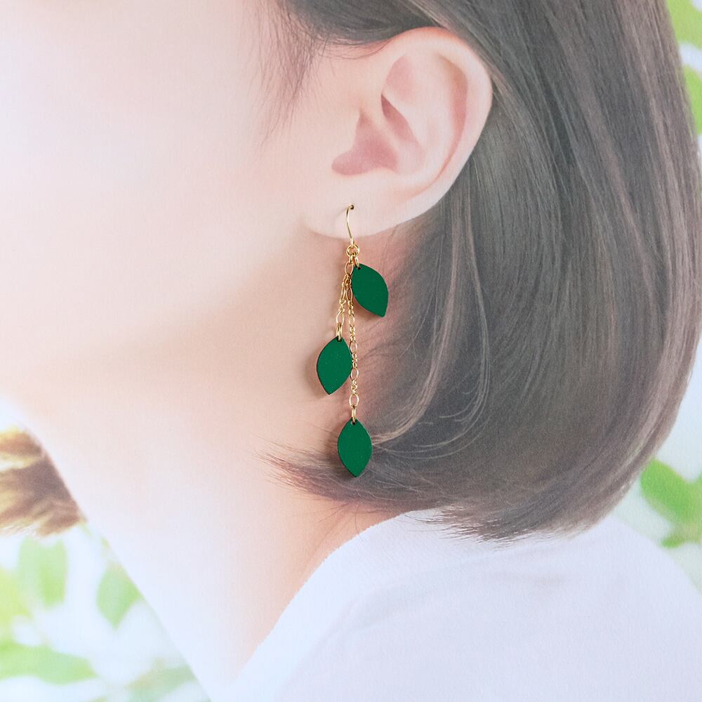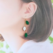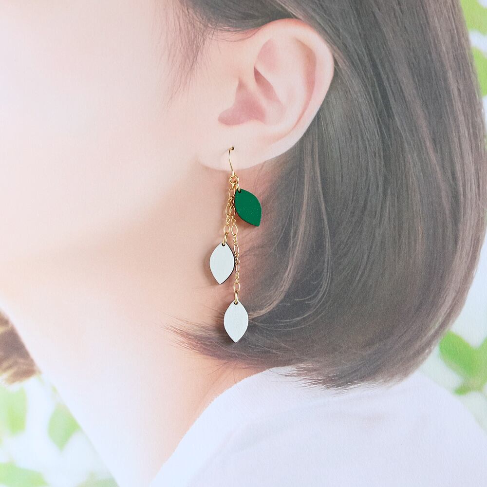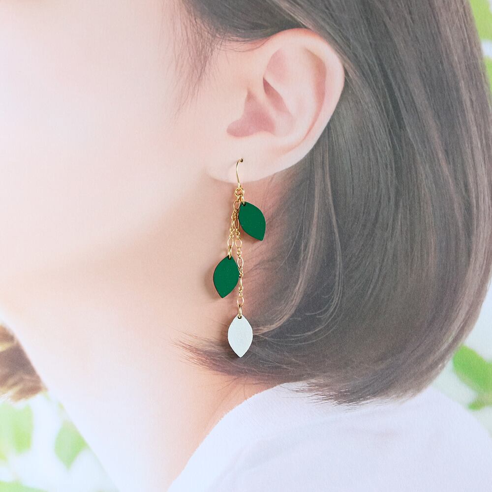 ピアスの配色は、半化粧の白に青々とした葉の緑にしました。