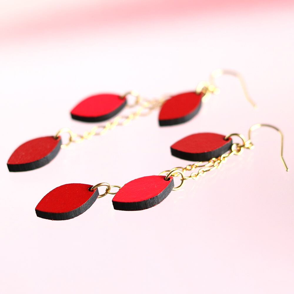 赤や濃いピンクの山茶花の花をイメージした2色で冬の耳元を鮮やかに彩ります。