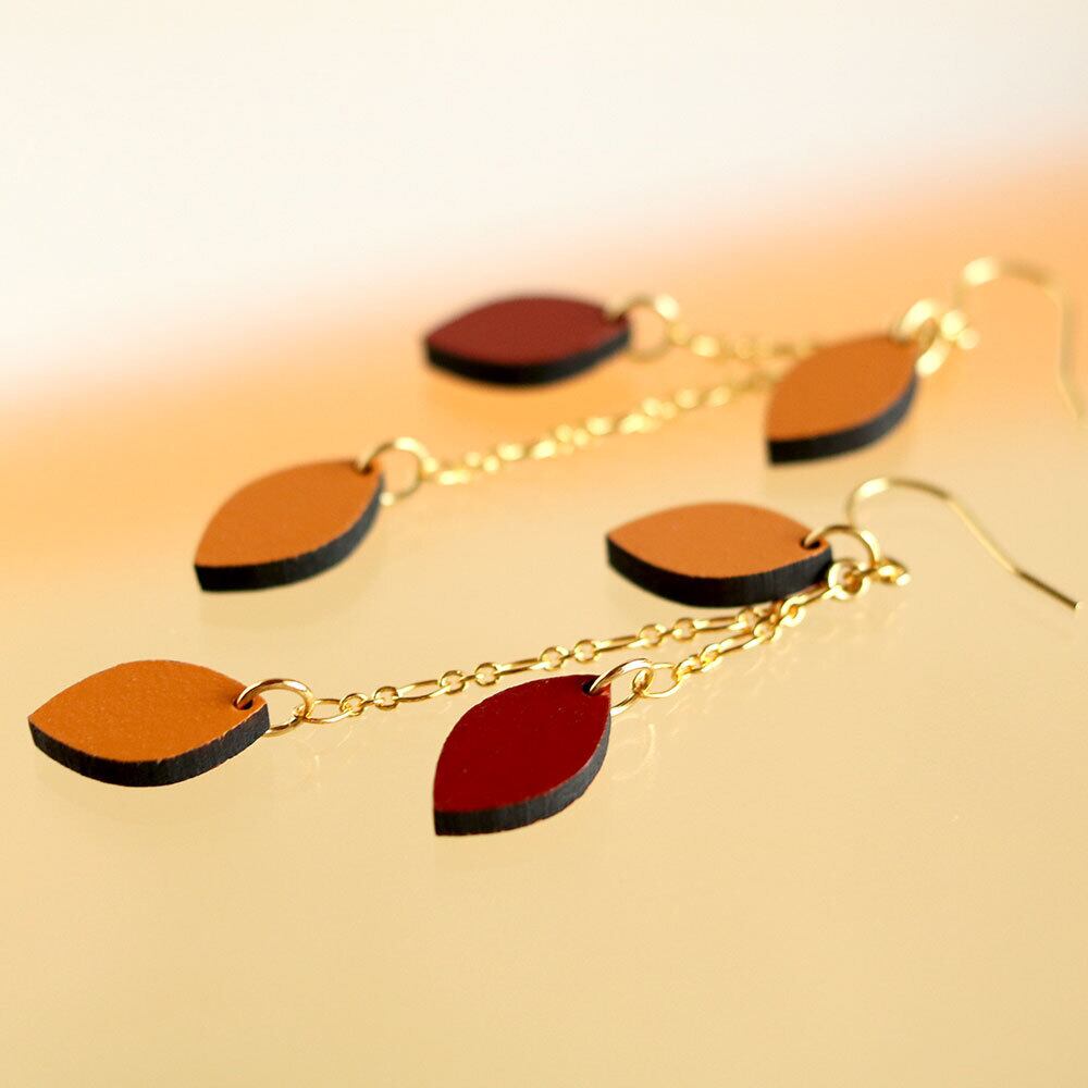 ピアスは紅葉、落葉をイメージした2色で表現しました。