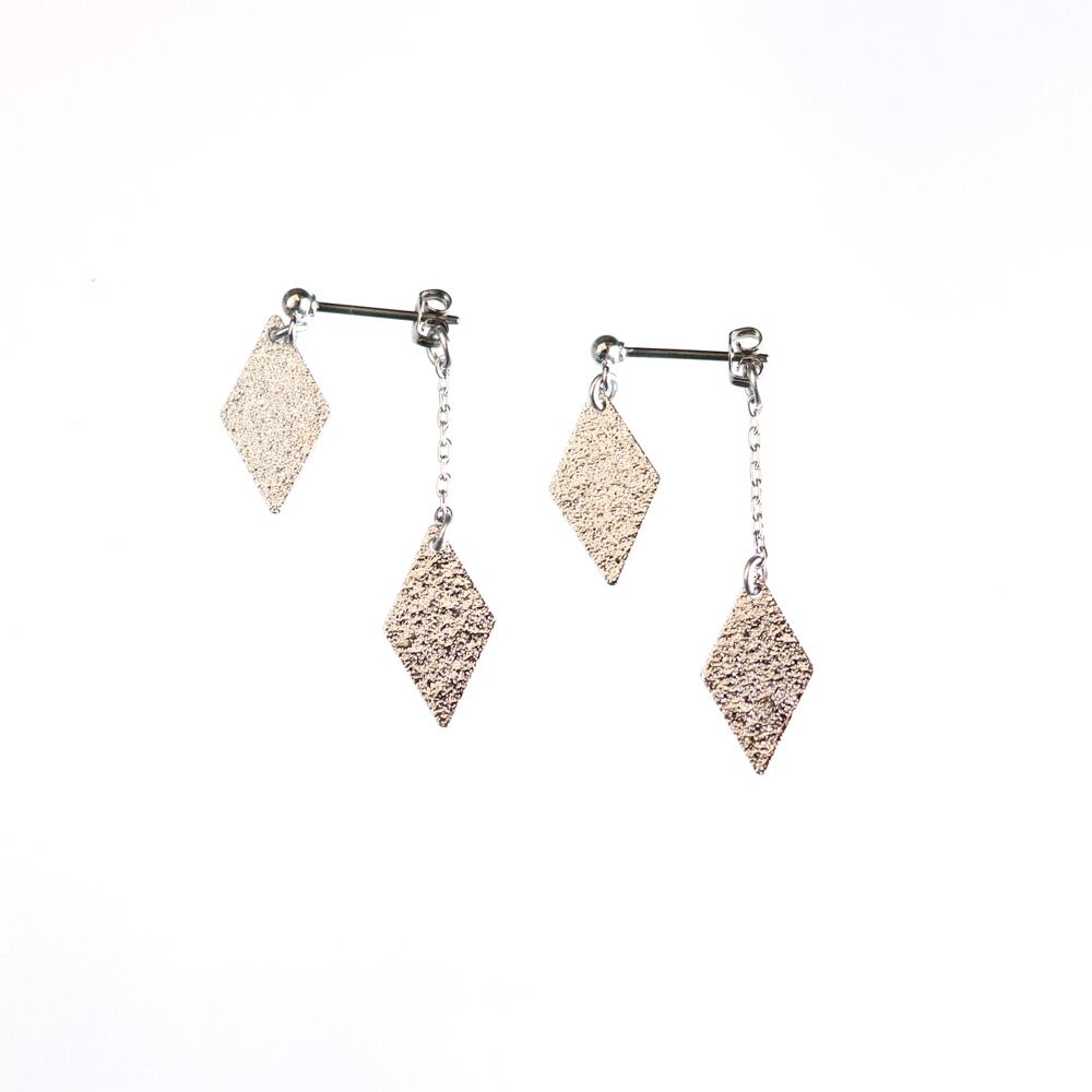 ダイヤ型のスターダストパーツのシンプルな2wayピアスです。