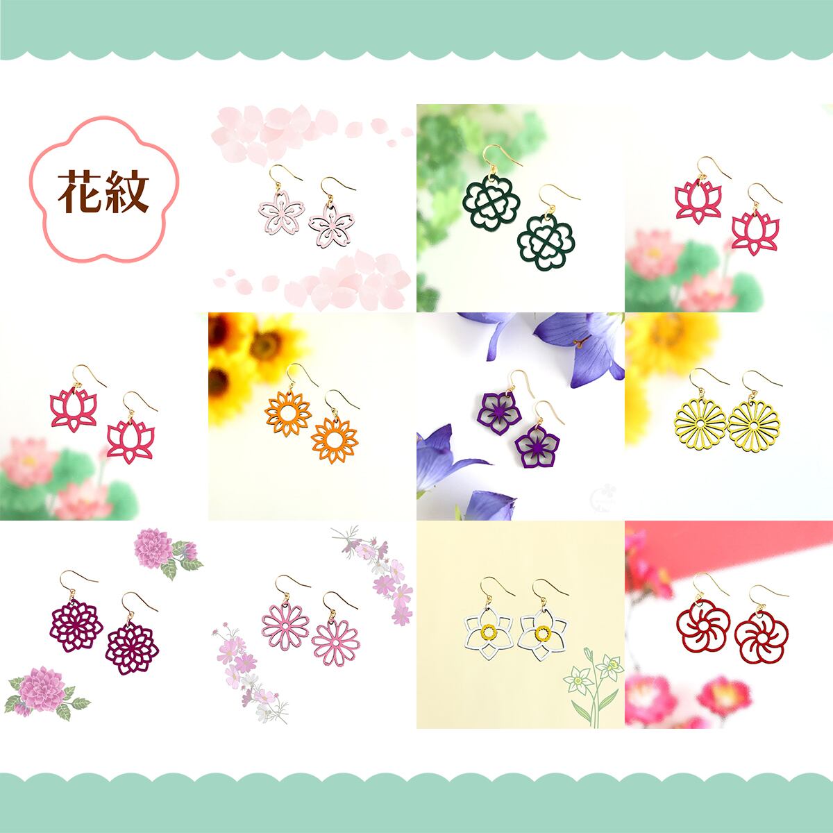 桜、クローバー、すずらん、ヒスイカズラ、藤、アネモネ、ネモフィラ、パンジー、ガーベラ、胡蝶蘭、バラ、ブーゲンビリア