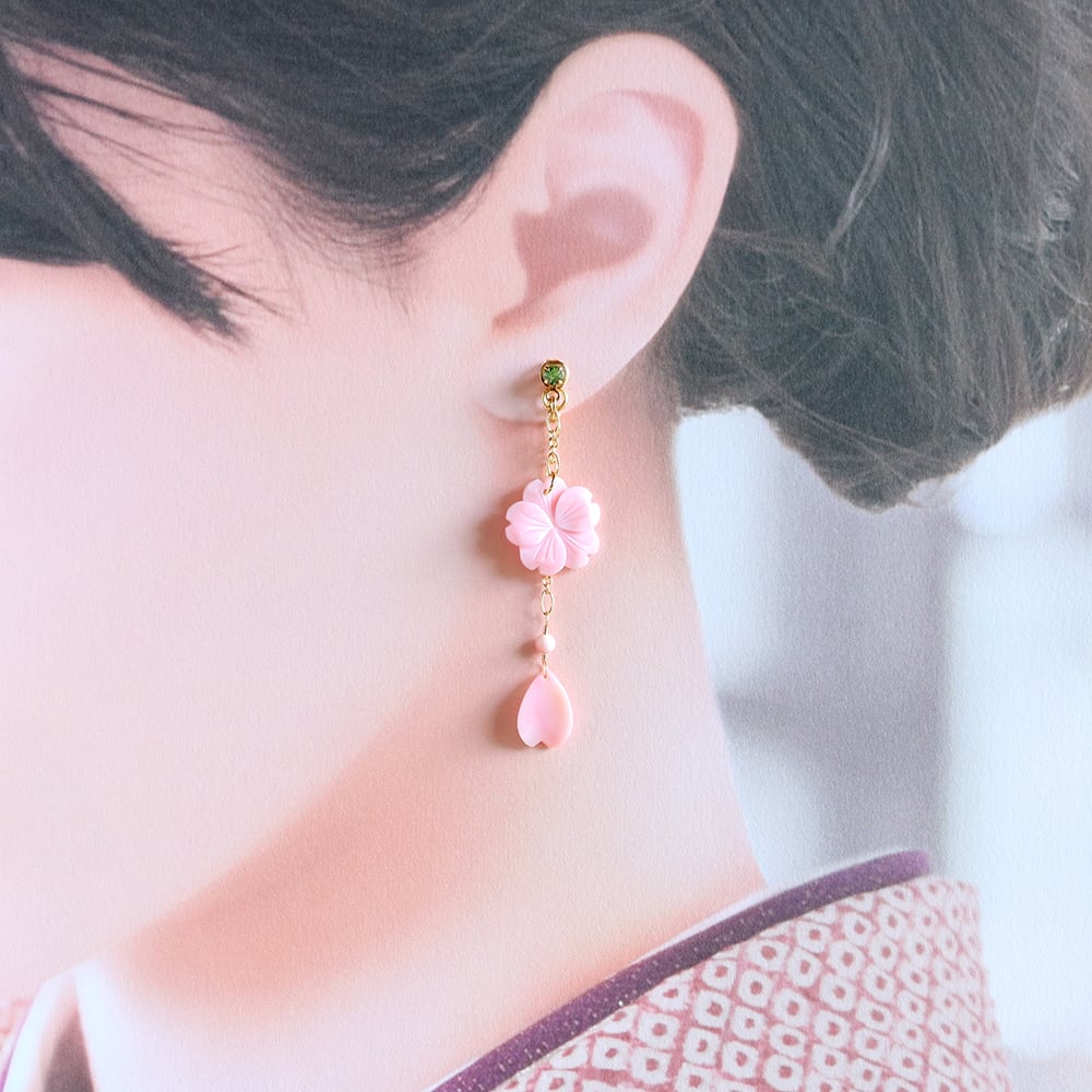お花見の季節に春気分の高まる桜をモチーフにしたピアスはいかがでしょうか。