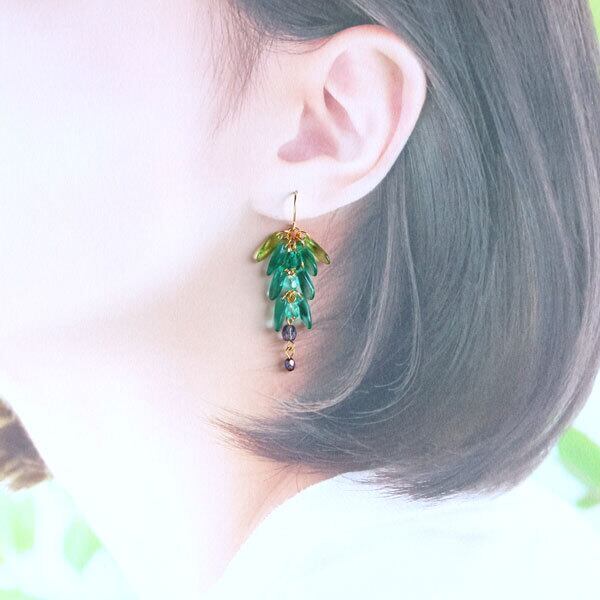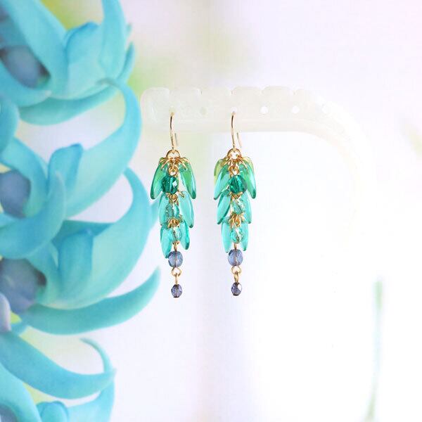 「緑の宝石」とも呼ばれる、ブルーグリーンが美しいヒスイカズラの花をイメージしたピアスです。