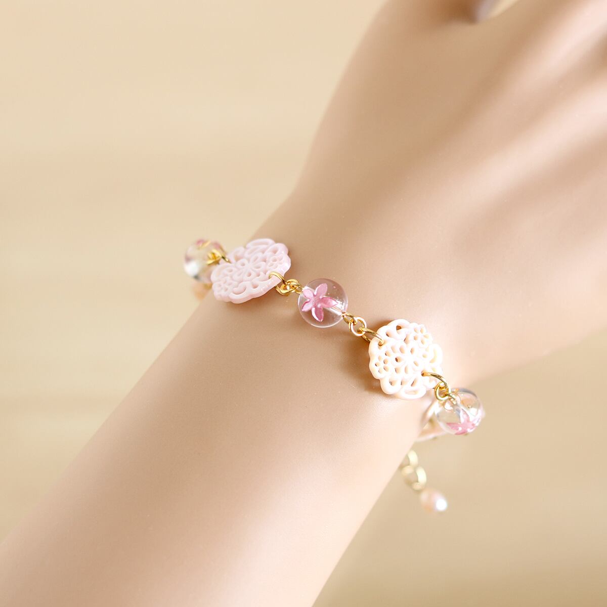 レースのようなシェルとフラワー彫刻クリスタルのブレスレット/br174
