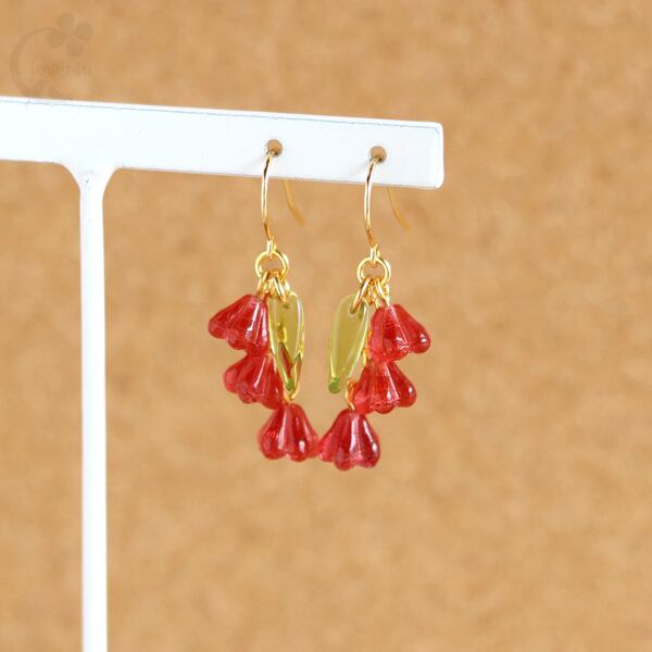 チェコガラスビーズのベルフラワーで作ったピアスです。