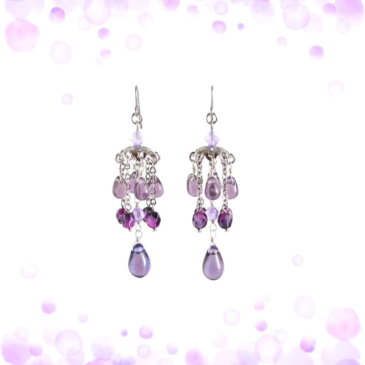 華やかに揺れるシャンデリアデザインピアス・青紫/p1592